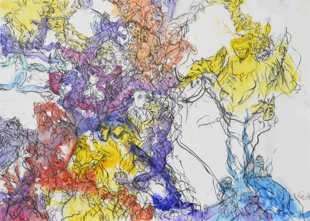 Leixl, geboren 1961 in Strass/Steiermark und u.a. Schüler von Lassnig, Attersee und Schmalix sowie von Pistoletto und Tim Ulrichs (Münster/D) steht für inhaltliche Avantgarde und handwerklich maltechnische Innovation. In den neuen Malarbeiten verknüpft der Künstler zwei unterschiedliche handwerkliche Techniken: flächig ruhige farbintensive Malerei als erste Malebenen verbunden mit dynamisch expressiven zeichnerischen Elementen. Die Motive enthalten die für Leixl typischen gestisch abstrahierten Figuren, oftmals eine symbiotische Ansammlung von Mensch und Tier.